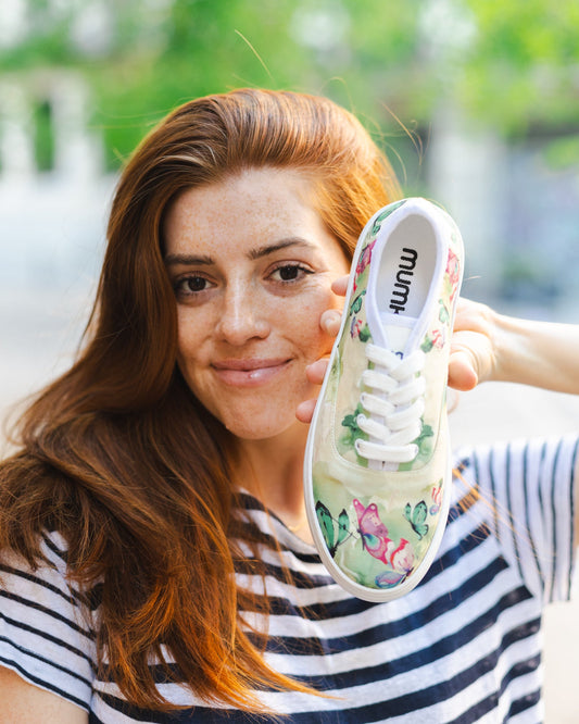 Leptiri na zelenoj pozadini - platnene ženske patike (-50%)