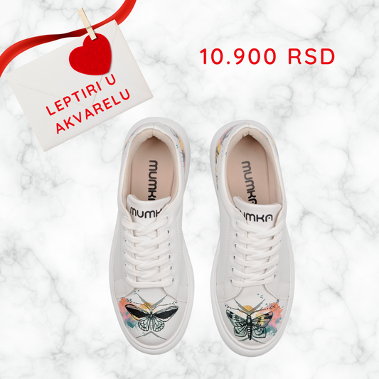 Leptiri u akvarelu - ženske patike sa platformom